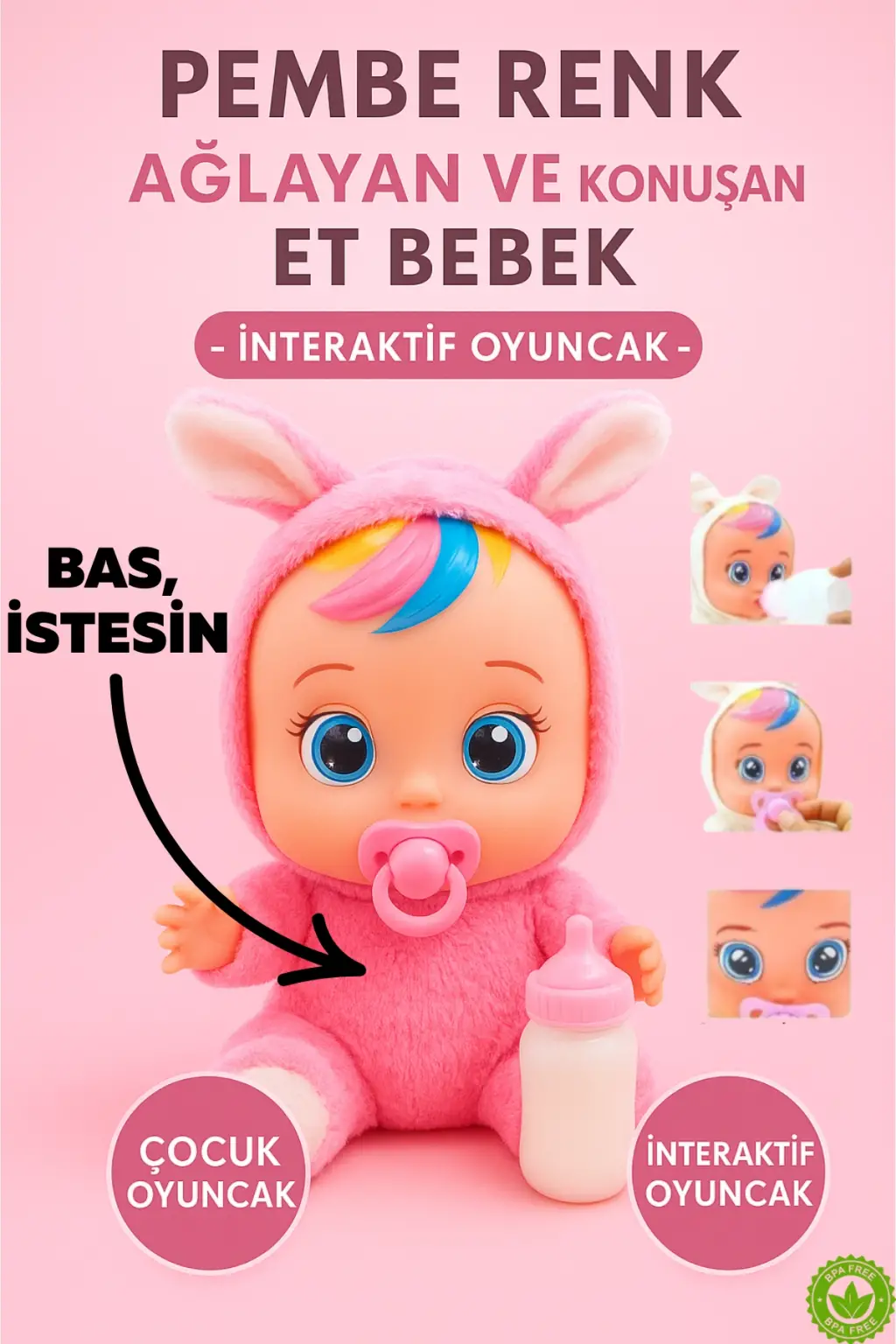 Pembe Kız Ağlayan ve Konuşan Et Bebek – İnteraktif İsteklerini Yerine Getir Bebek