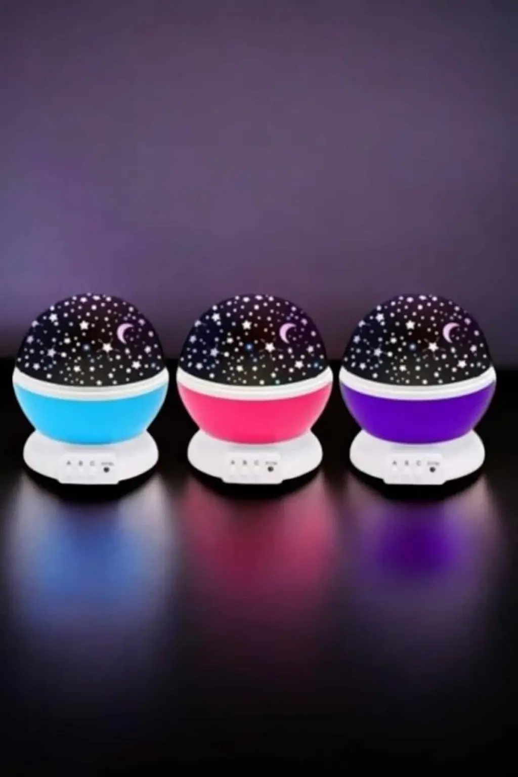 Star Master Yıldızlı Gökyüzü Projeksiyon Gece Lambası, evdeki her köşeye büyülü bir hava katmak için mükemmel bir üründür. Mavi ve mor ışıkların döner yapısı, tavanınıza büyüleyici bir şekilde yıldızlar, gezegenler ve ayı yansıtarak eşsiz bir gece manzarası sunar. Özellikle çocuklar için harika bir gece lambası olan Star Master, karanlıktan korkan çocukların daha rahat uyumasını sağlar. Gözleri rahatsız etmeyen yumuşak ışığı, gece boyunca sakin bir uyku ortamı oluşturur. Ayrıca, ışığın seviyesini ve rengini ayarlayabileceğiniz fonksiyonlarla, odanızda tam istediğiniz atmosferi oluşturabilirsiniz. Dönen yapısı sayesinde tavanınıza hareketli yıldızlar ve gezegenler yansıtarak her an farklı bir görsel deneyim yaşamanızı sağlar. Şeffaf üst kapak sayesinde ışık doğrudan tavana yansıtılabilir ya da farklı bir yönlendirilebilir. 4 adet AAA pil ile çalışan bu projeksiyon gece lambası, enerji verimli bir kullanım sağlar ve her yere kolayca taşınabilir. Star Master, sadece çocuklar için değil, aynı zamanda gece atmosferi yaratmak isteyen herkes için mükemmel bir tercihtir.