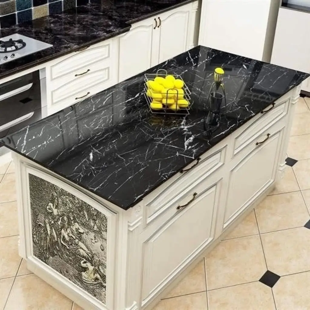 Mermer Desenli Masa Tezgah Mutfak Duvar Kağıdı Su Geçirmez Yapışkanlı Folyo Sticker Siyah 5x0,6m