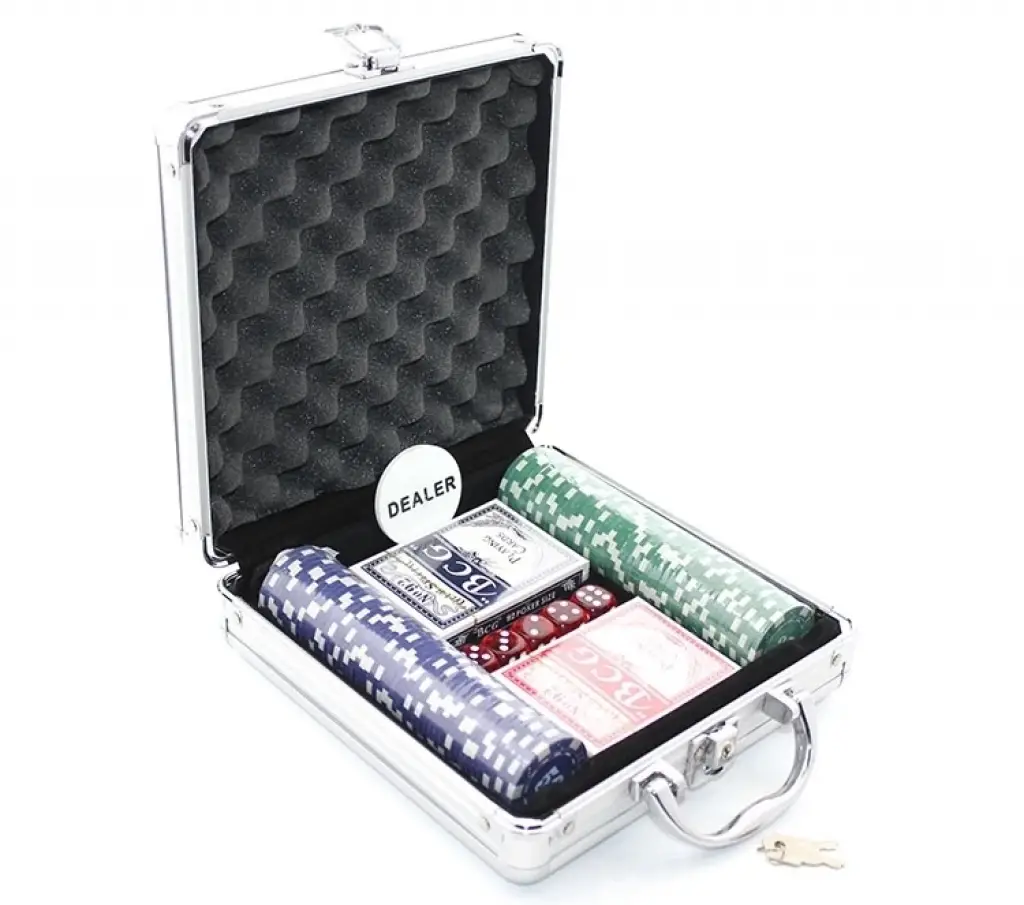 Metal Çantalı 100 Chipli Poker Oyunu Alk1495 Ürün Ölçüleri 20*20 Cm Özellikler • Metal Çanta • Kilit Sistemi • 100 Adet 1.Derece Kaliteli Chip • 2 Adet İskambil Kartı