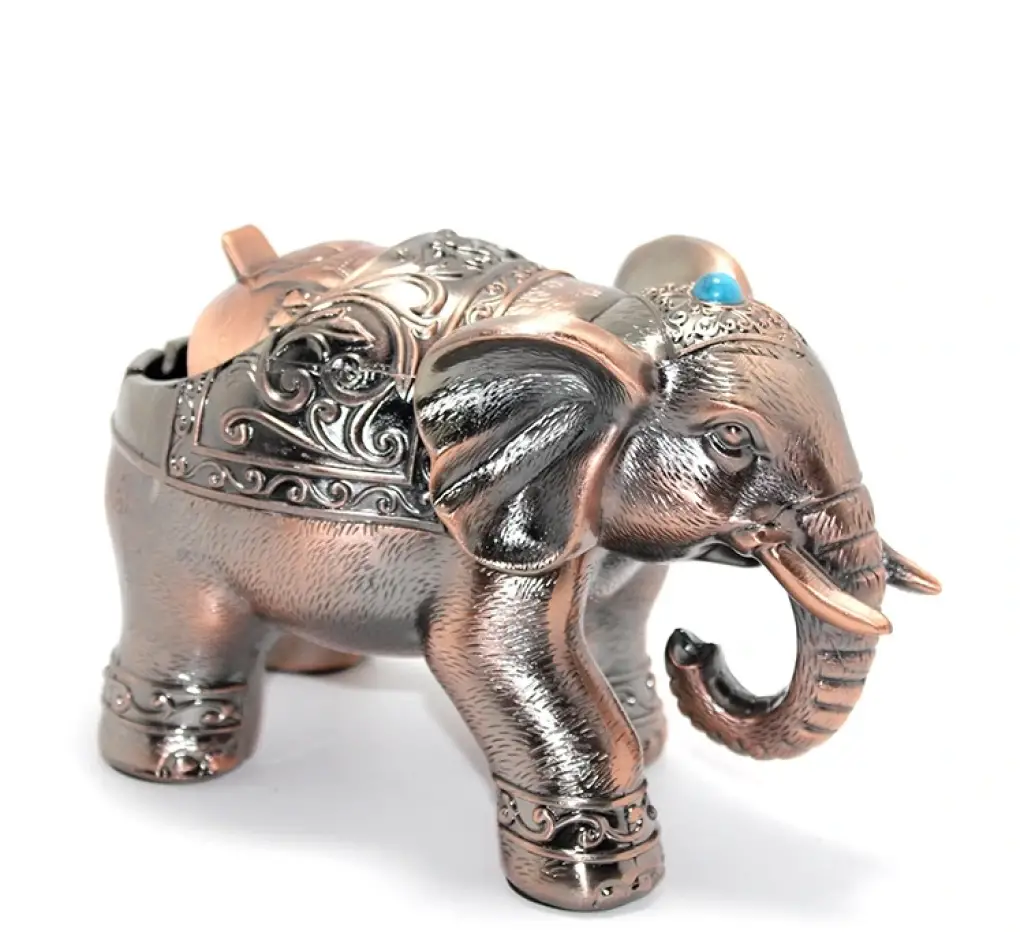 METAL FİL FİGÜRLÜ KÜLLÜK MODEL 1Ürün ÖzellikleriMetal Fil Figürlü Küllük Model 1, şık ve dekoratif tasarımıyla hem küllük hem de estetik bir obje olarak kullanılabilir. Dayanıklı metal malzemeden üretilmiş olup, özel işleme detayları ve otantik bronz görünümüyle dikkat çeker. Fil figürü, bolluk ve bereketin sembolü olarak mekanlarınıza mistik bir hava katar. Sigara küllüğünüzü saklamak ve külü önlemek için özel kapaklı yapıya sahiptir. Hem ev dekorasyonunda hem de pratik kullanımda mükemmel bir tercihtir.Paket İçeriği1 Adet Metal Fil Figürlü Küllük Model 1