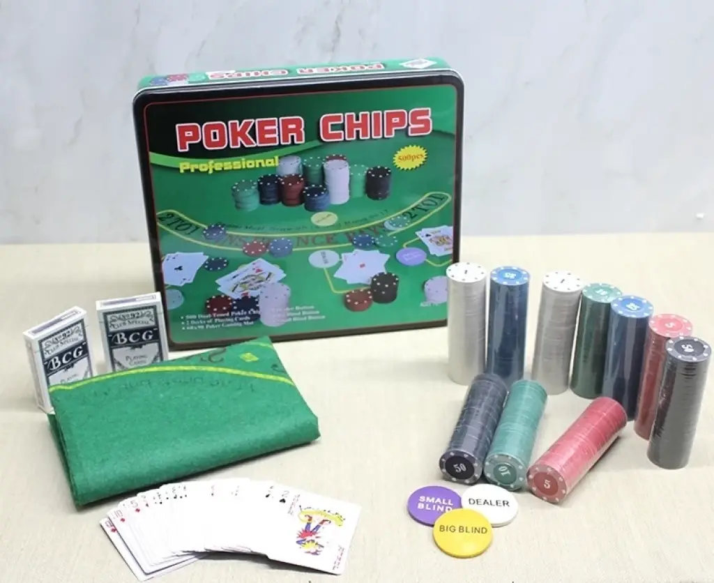 Metal Kutulu 500 Chip Ve 2 Adet İskambil Kağit Setine Sahip Poker Oyunu Alk3540