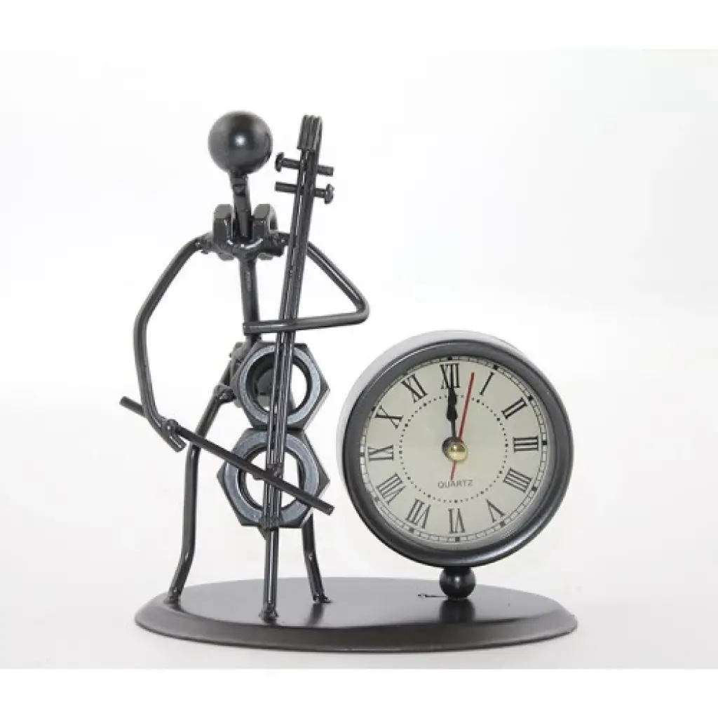 METAL MÜZİSYEN SAAT MODEL 4Ürün ÖzellikleriMetal Müzisyen Saat Model 4, zarif ve sanatsal tasarımıyla müzik tutkunları için özel olarak üretilmiş dekoratif bir masa saatidir. Dayanıklı metal gövdesi sayesinde uzun ömürlü kullanım sunar. Quartz mekanizmalı olup, hassas zaman ölçümü sağlar. Müzikal figür detayları ile öne çıkan bu saat, ofis, çalışma masası, salon veya raf dekorasyonu için mükemmel bir tamamlayıcıdır. Şık ve benzersiz tasarımıyla hediye olarak da ideal bir seçimdir.Paket İçeriği1 Adet Metal Müzisyen Saat Model 4