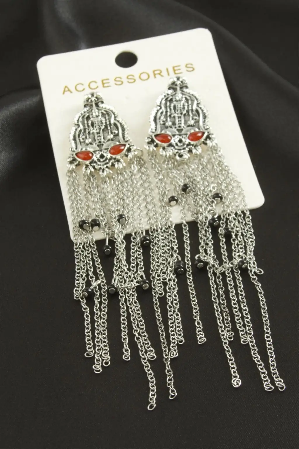 Küpe; Ürün malzemesi metaldir. Ürün boyu 13 cmdir. Kartlı ve paketiyle beraber gönderilecektir.