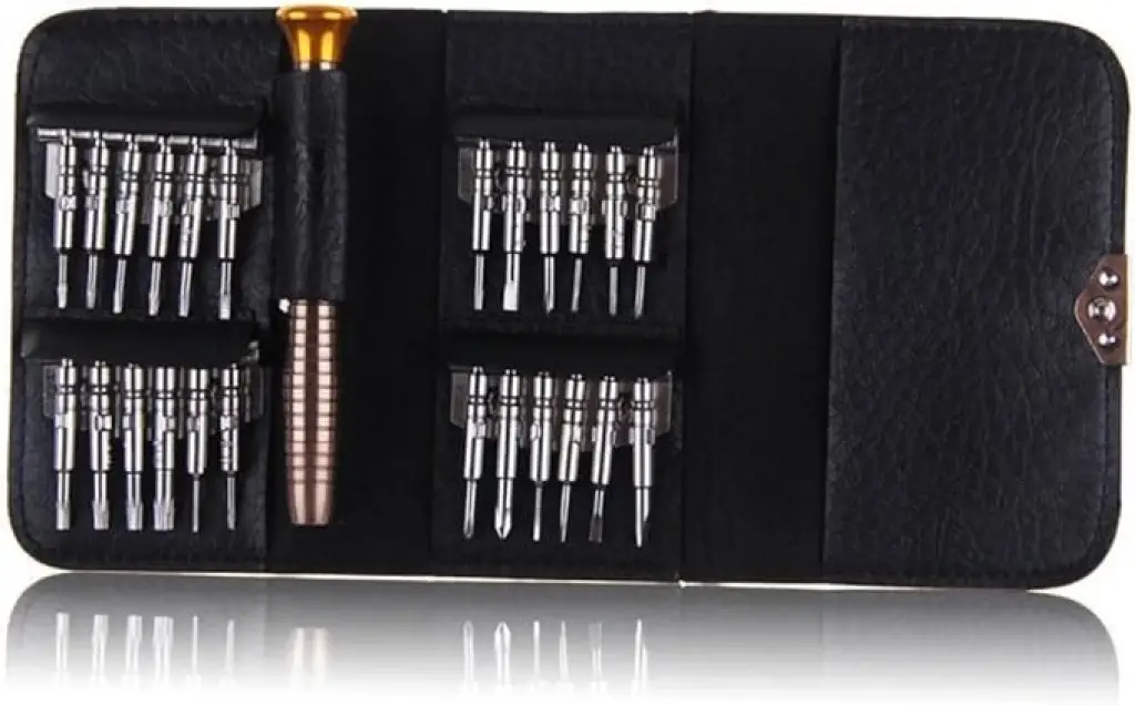 MİNİ CÜZDAN TORNAVİDA SETİMini Cüzdan Tornavida Seti: Küçük, Pratik ve Güçlü!Mini Cüzdan Tornavida Seti, hassas elektronik cihazlar ve cep telefonları gibi küçük tamiratlar için ideal bir çözümdür. Set, 24 adet tornavida ucu ve 1 adet tornavida kaleminden oluşan toplam 25 parçadan oluşmaktadır. Kompakt boyutlarıyla (10.5 cm x 6.5 cm x 2 cm) her yere kolayca taşınabilir ve her zaman elinizin altında bulundurabilirsiniz.Dayanıklı çıtçıtı sayesinde cüzdan sağlam bir şekilde kapanır ve açılmaz. Tornavida uçları, cüzdanın içinde güvenli bir şekilde sabitlenmiştir ve yerinden çıkmaz. Sadece 112 gram ağırlığında olan bu set, hafifliği ve taşınabilirliği ile kullanım kolaylığı sunar.Mini Cüzdan Tornavida Seti, profesyonel kullanıcılar için geliştirilmiş olup, hassas elektronik ürünlerin ve cep telefonlarının tamiratında en iyi yardımcınız olacak şekilde tasarlanmıştır. Ergonomik tasarımı ve yüksek kaliteli malzemeleri ile uzun ömürlü kullanım sağlar. Kompakt ve pratik bu set ile her türlü tamirat işlemini kolaylıkla gerçekleştirebilirsiniz.Paket İçeriği1 adet mini cüzdan tornavida seti