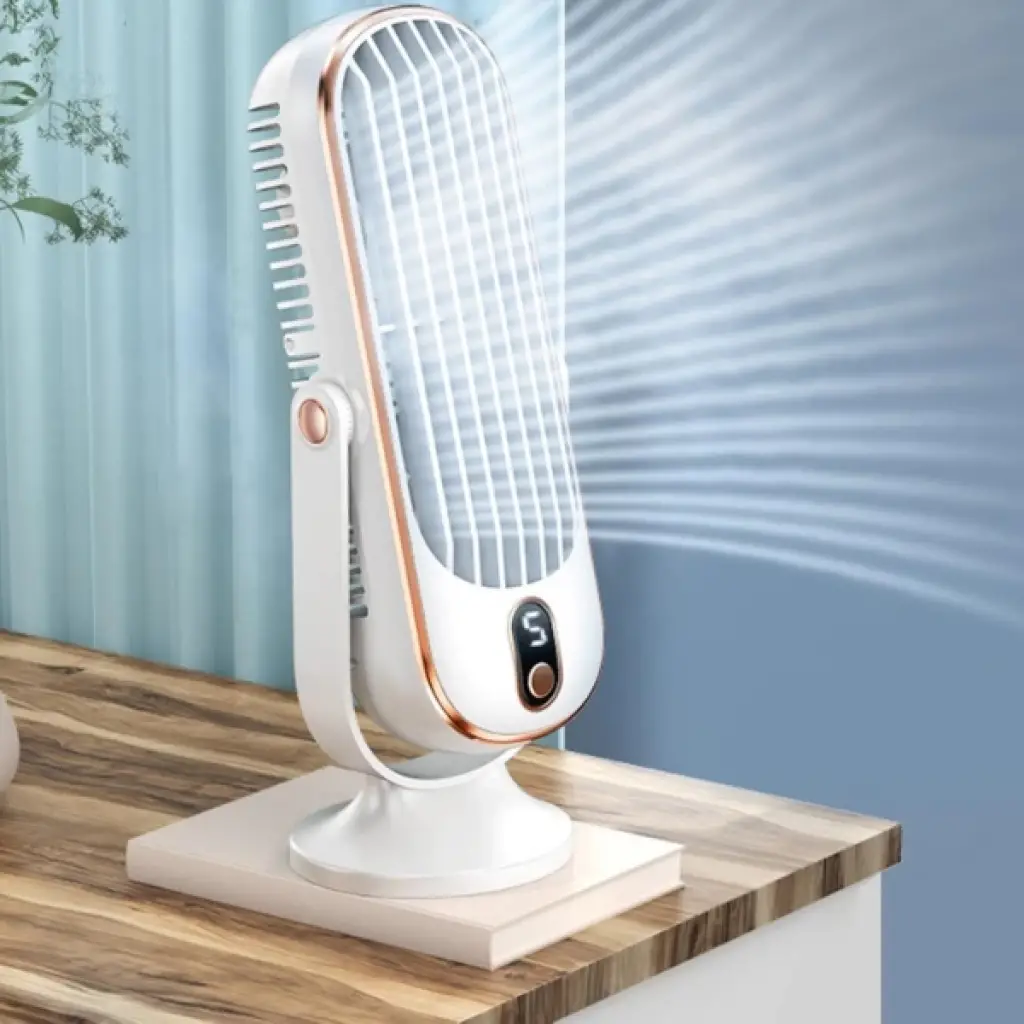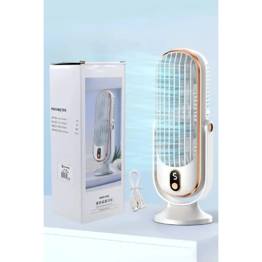 MİNİ UZUN MASAÜSTÜ FANÜrün ÖzellikleriMini uzun masaüstü fan, zarif ve kompakt tasarımıyla çalışma alanlarında estetik bir serinlik sağlar. 25.9 cm yüksekliğe, 9.5 cm genişliğe ve 8.2 cm derinliğe sahip bu fan, masanızda fazla yer kaplamadan etkili bir hava sirkülasyonu sunar. 4000 mAh batarya kapasitesi ile uzun süreli kullanım imkanı tanır ve USB üzerinden şarj edilebilir. 5 kademeli hız ayarı sayesinde ihtiyaç duyulan serinlik seviyesini kullanıcıya göre ayarlama esnekliği sunar. HD LED ekranı sayesinde hız seviyesi kolaylıkla takip edilebilir. Sessiz çalışma özelliği ile gece ya da ofis ortamlarında dikkat dağıtmadan kullanılabilir. 720 derece dönebilen başlığı sayesinde yönlendirme esnekliği yüksek olan bu ürün, modern tasarımıyla hem işlevsel hem dekoratiftir.Paket İçeriği1 Adet Mini Uzun Masaüstü Fan