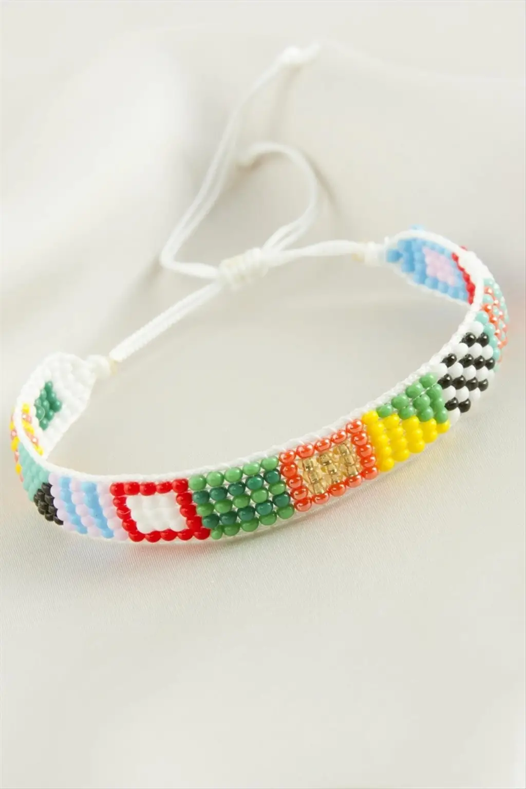Bileklik; Ürün malzemesi miyuki boncuk ve iptir. Ürün arkası asansörlüdür. Bileğe göre ayarlamalıdır.
