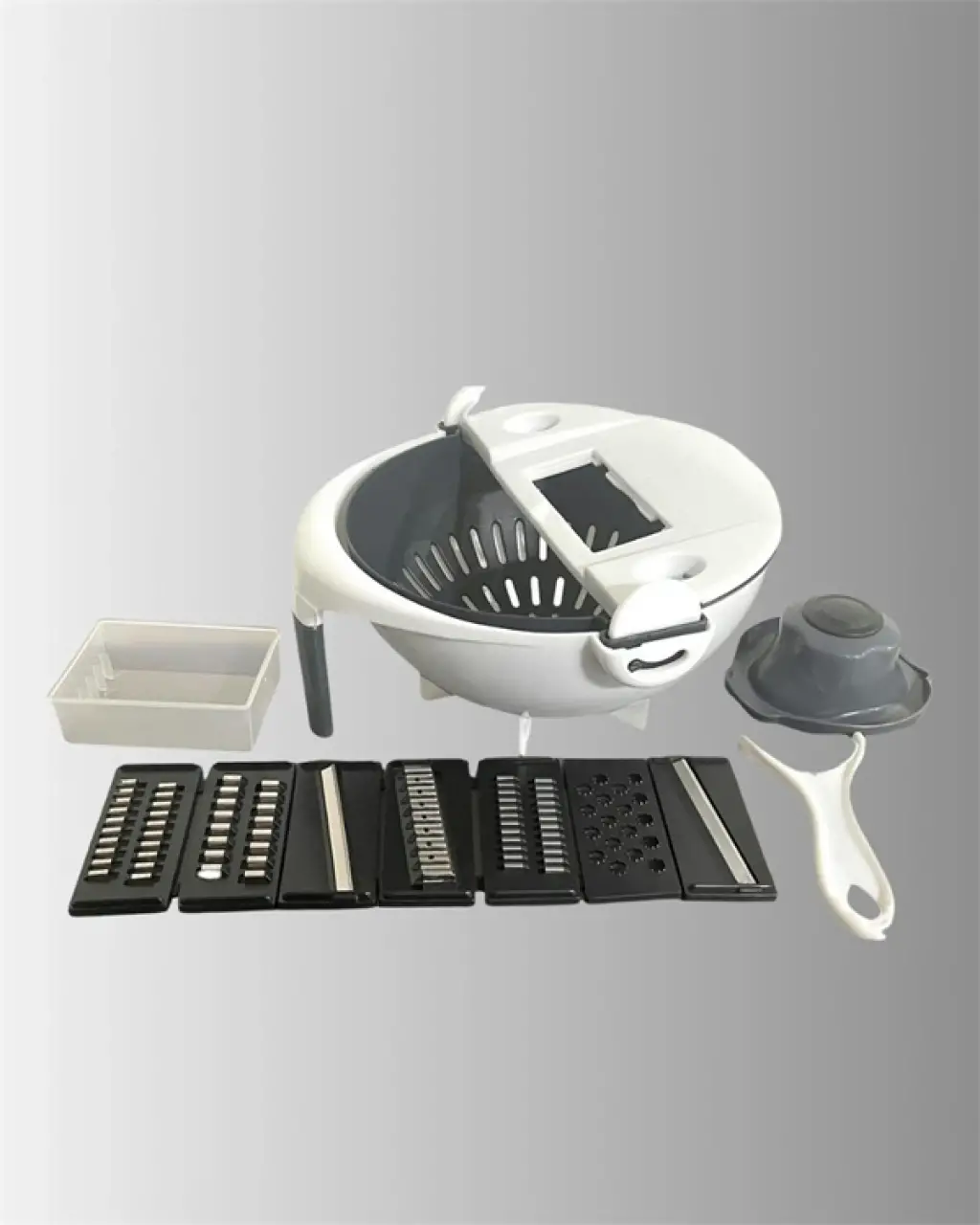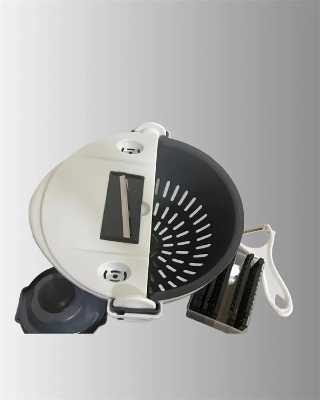 Mutfakta geçirdiğiniz zamanı daha verimli hale getirmek isteyenler için tasarlanmış bu çok işlevli rende ve dilimleyici, sebze ve meyve hazırlama sürecini büyük ölçüde kolaylaştırır. Döner mekanizmalı yapısıyla birlikte gelen bıçaklar, farklı kesim türleri için uygundur; ister ince ister kalın rendeleme, ister dilimleme ya da şerit doğrama işlemlerini pratik şekilde gerçekleştirmenizi sağlar.Ürünün alt kısmında yer alan hazne, rendeleme ve doğrama işlemi sırasında yiyecekleri doğrudan içine toplar. Bu hazne aynı zamanda süzgeç işlevi görür; sebzeleri yıkadıktan sonra doğrudan iç hazneye alabilir, suyun tahliyesini pratik bir şekilde gerçekleştirebilirsiniz. Bu sayede ek bir süzgeç kullanımına gerek kalmaz.Kaymaz tabanı ve ergonomik gövdesi, mutfakta güvenli kullanım sunar. Yanında gelen el koruma atı, rende veya dilimleme sırasında olası kazaların önüne geçerek kullanıcı güvenliğini artırır. Rende bıçakları kolayca değiştirilebilir yapıdadır ve döner mekanizma sayesinde farklı bıçakları kullanmak zahmetsizdir. Hazne kolayca temizlenebilir; suya dayanıklı yapısıyla elde ya da bulaşık makinesinde yıkanabilir.Salatalık, havuç, patates, kabak gibi günlük kullanılan birçok sebzeyi cips inceliğinde ya da şerit formunda doğramak mümkündür. Kompakt tasarımı sayesinde mutfağınızda fazla yer kaplamaz ve depolaması son derece kolaydır. Bu pratik mutfak gereci, yemek hazırlıklarınızı hem hızlandırır hem de daha düzenli hale getirir.