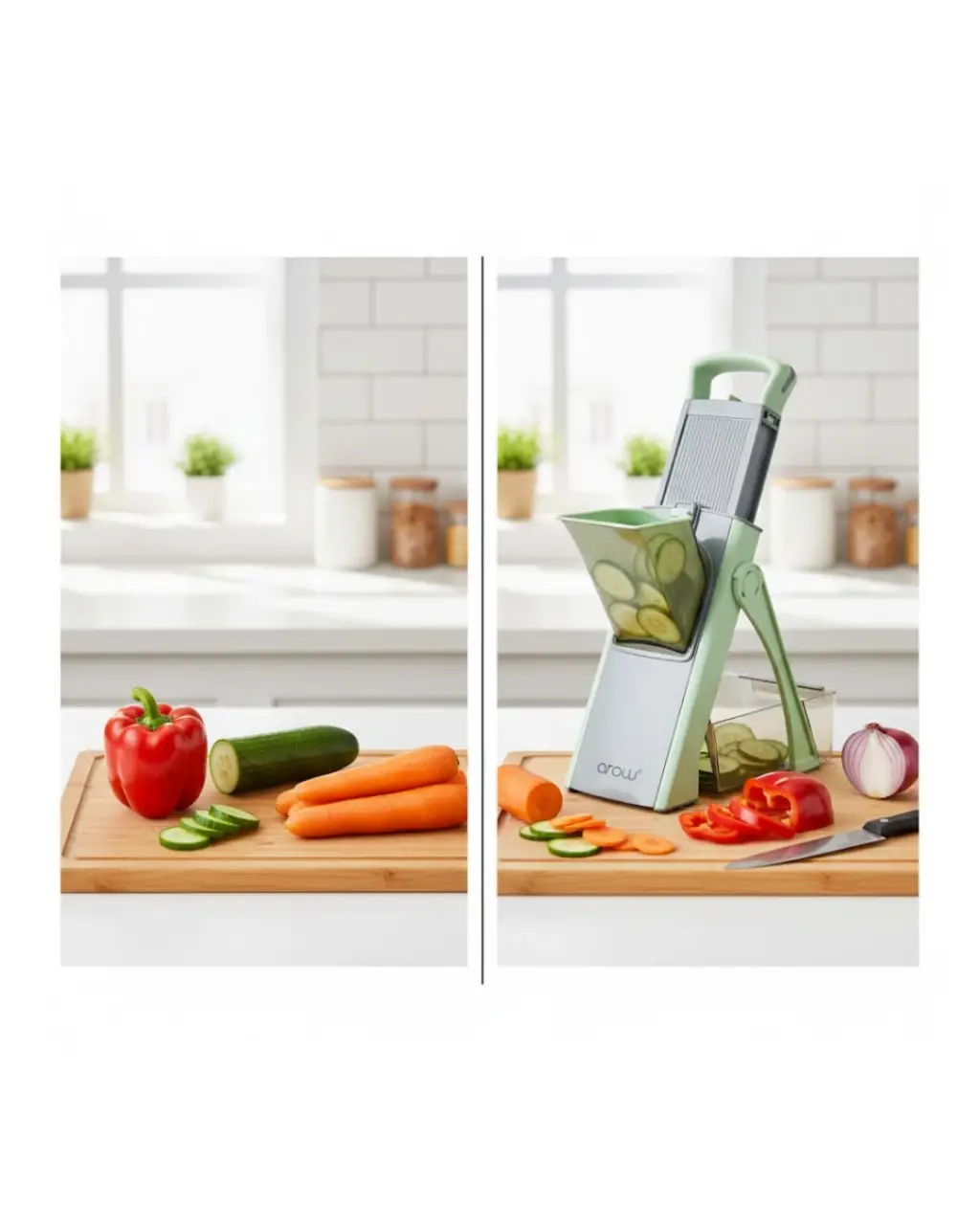 Modern mutfaklar için tasarlanmış paslanmaz çelik el rendesi, fonksiyonel özellikleriyle dikkat çeker. Dayanıklı çelik yapısı, sağlamlık ve uzun süreli kullanım imkânı sunar. Keskin bıçakları sayesinde zahmetsiz doğrama ve dilimleme yapılabilir.Üst bastırma aparatı, güvenli ve dengeli kullanım sağlar. Ellerin bıçaklara temas etmesini önleyen tasarım, ürünü en güvenli seçeneklerden biri haline getirir. Katlanabilir yapısı ile saklaması son derece kolaydır.Yiyecek toplama kabı tezgâhın temiz kalmasına yardımcı olurken, temizlik fırçası bıçak bakımını pratik hale getirir. Estetik görünümüyle mutfağınıza modern bir hava katar.