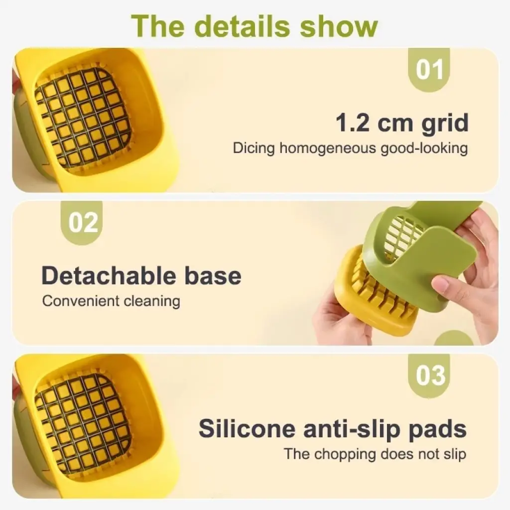 MULTİFONKSİYON SEBZE MEYVE DOĞRAYICI Sebzeleri ve meyveleri hızlıca doğrayın.Elleriniz ürünün güvenli tasarımı sayesinde keskin bıçaklara dokunmaz.Meyve ve sebze doğrarken yaşanan küçük kazaların da önüne geçer.Meyve ve sebzelerinizi doğrarken ekstra alete ya da kesme tahtasına ihtiyacınız olmaz.Paket İçeriği1 adet multfonksiyonel sebze meyve doğrayıcı