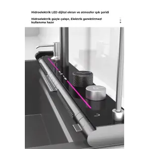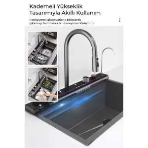 Dijital Akıllı Eviye Seti – LED Sıcaklık Göstergeli, Çift Şelale Musluklu, 360° Döner Sistem