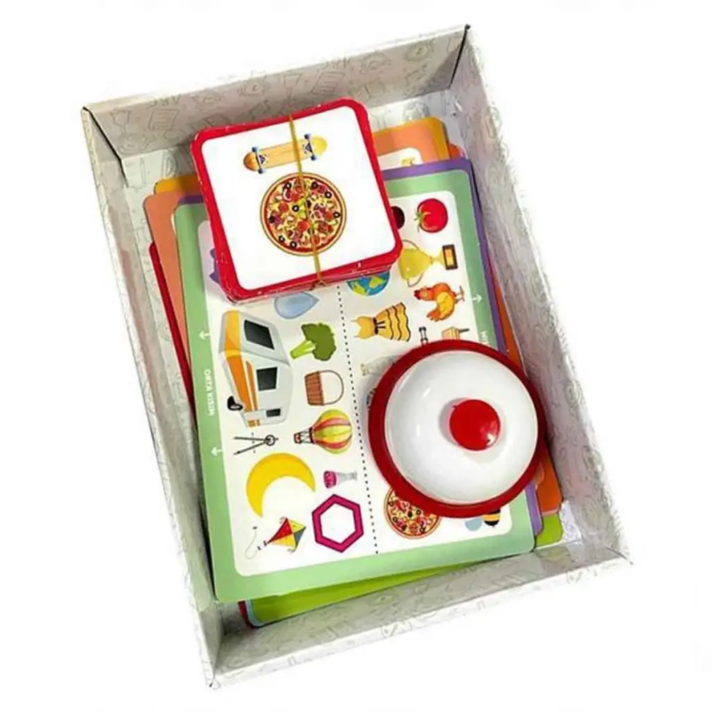 Kutu i.ccedil;erisinde; 9 adet oyun tablası, 64 adet oyun kartı ve 1 adet masa zili ve oyun anlatım kartı bulunmaktadır.
