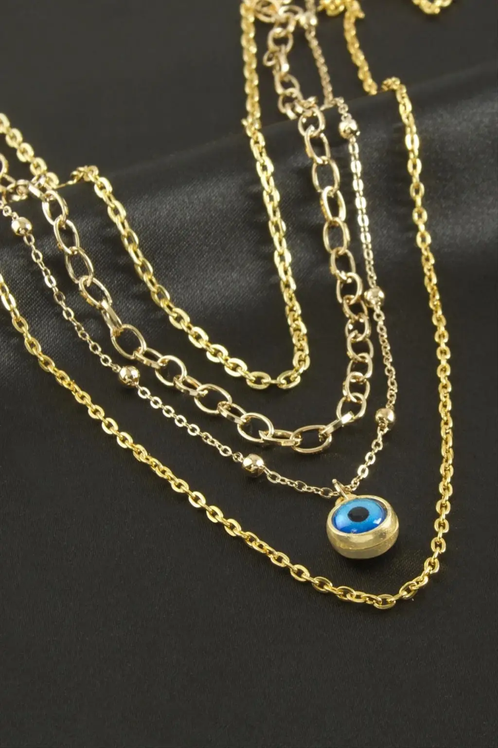 Kolye; Ürün malzemesi nazar boncuk  ve metaldir. Ürün zincir uzunluğu 60 cmdir. Kartlı ve paketiyle beraber gönderilecektir. 4 zincirden üretilmiştir.