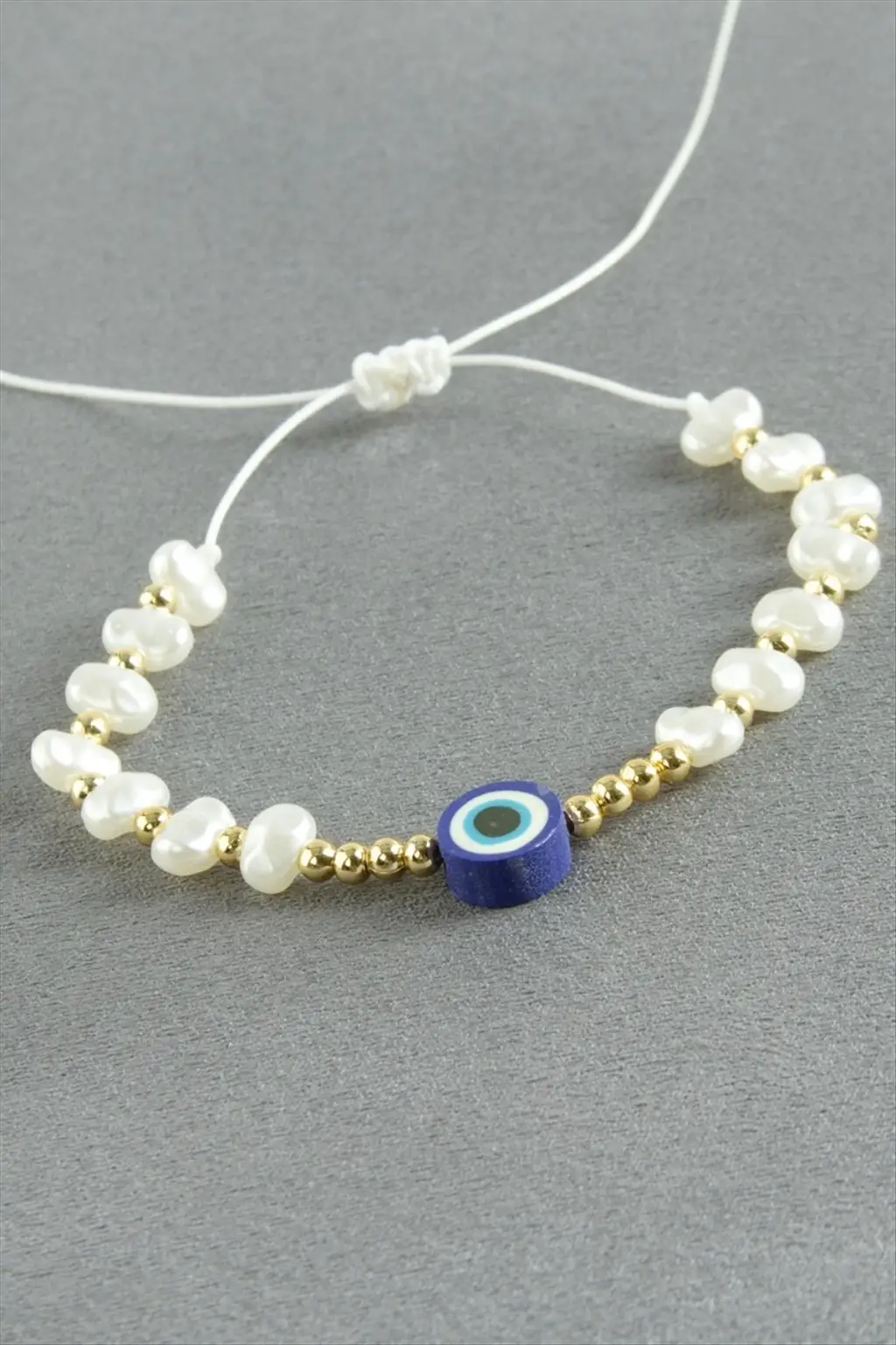 Bileklik; Ürün malzemesi boncuk, inci ve makrome iptir. Ürün arkası asansörlüdür. Bileğe göre ayarlanabilir.