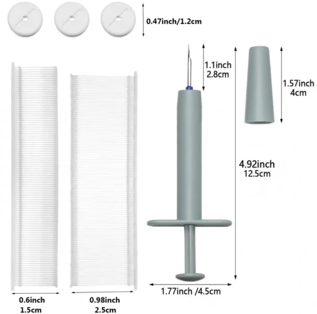 NEVRESİM SABİTLEME SETİÜrün ÖzellikleriYorgan ve yorganların demetlenmesini ve kaymasını önleyin , çok rahat vedinlenmiş bir gece uykusu için rahatlık ve düz tabakanın daha yakındanoturmasını sağlayın. Çok amaçlı Süslemeleri, perdeleri asmak, diğer kumaşkaymalarını sabitlemek ve çok daha fazlası için iğnesiz sabitleme eserinikullanabilirsiniz! Yatağın her köşesi için çapraz olarak kullanılan bir kapakklipsleri, tüm 4 köşesine çok kolay takılır ve saniyeler içinde yaratıcı tokatasarımına ayrılabilir.Paket İçeriği 400 -Plastik Kılçık İp 1.5 cm40- Plastik Pul1- Sabitleme Tabancası