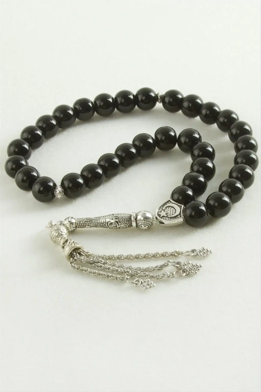 Tesbih; Onix taşından imal edilmiştir. Ürün yapısı parlakdır. Taşlar misina üzerine dizilmişdir.Taş boyutu 10 mm'dir. Püskül modelleri asortilidir. Siparişlerinizde karışık olarak gönderilecektir.