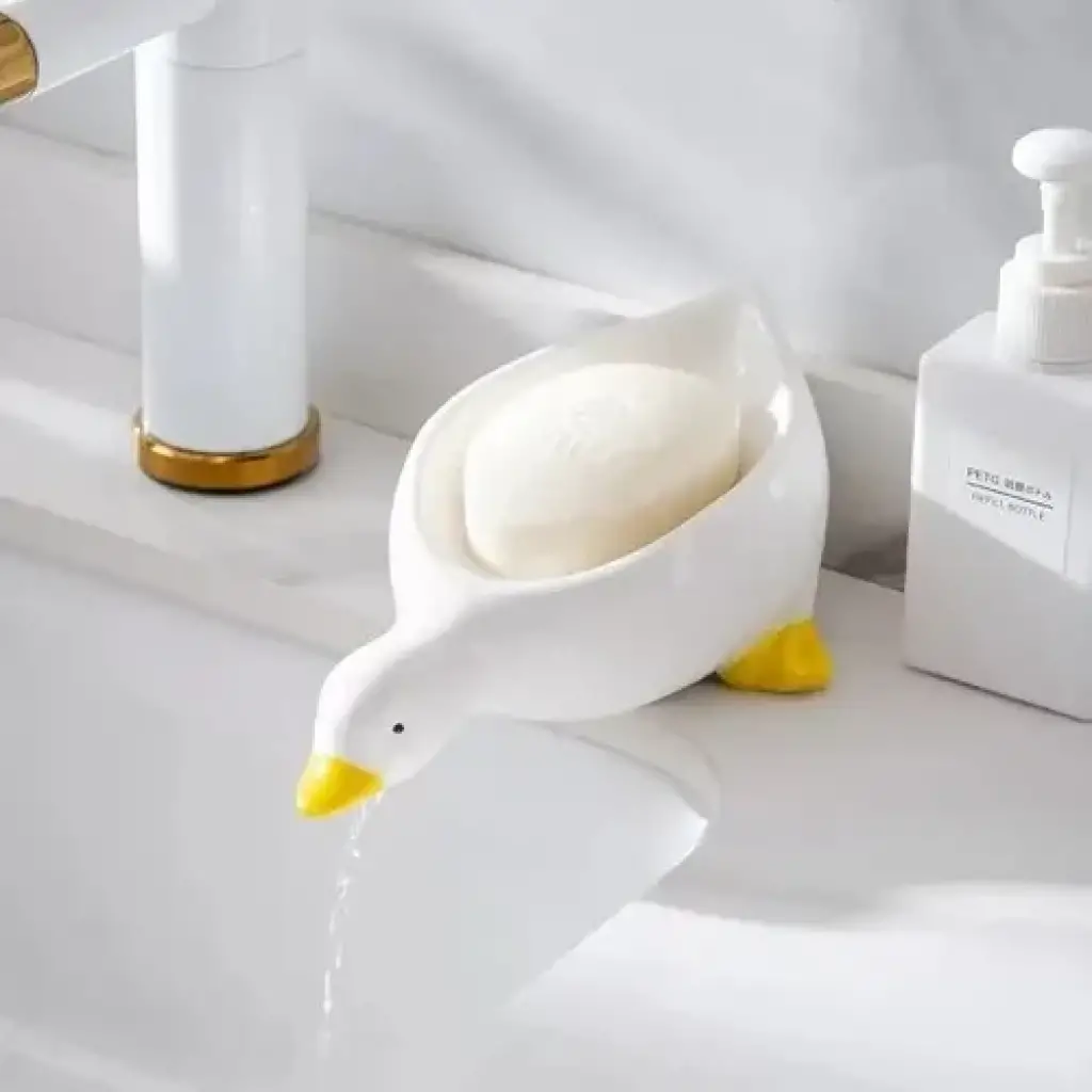 ÖRDEK TASARIMLI SABUNLUK Ördek tasarımlı sabunluk, sağlam ABS plastik malzemeden üretilmiştir ve sarı ile beyaz renk seçenekleri sunar. Sevimli ördek şekli, banyo veya lavabo alanınıza eğlenceli bir dokunuş katar. Sert plastik yapısı, dayanıklılık ve uzun ömürlü kullanım sağlar. Üzerindeki delikler, su birikimini önler ve sabunun daha uzun süre dayanmasına yardımcı olur. Kompakt boyutu, kolay taşınabilirlik ve düzen sağlamak için idealdir. Paket İçeriği1 adet ördek tasarımlı sabunluk