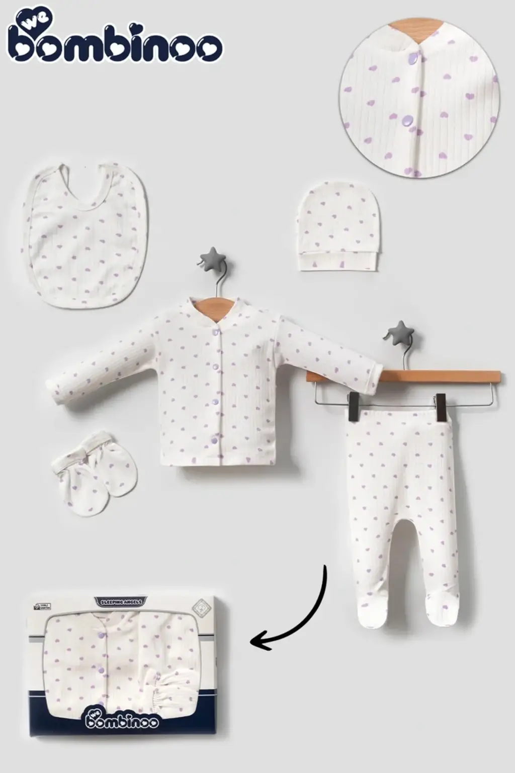 Kutulu ambalajıyla hediye olarak da ideal olan bu set, sevdiklerinizin yeni doğan bebekleri için harika bir seçenek olacaktır. Doğallığı ve şıklığı bir arada sunan Organik ve doğal pamuk malzemeden üretilmiştir.
