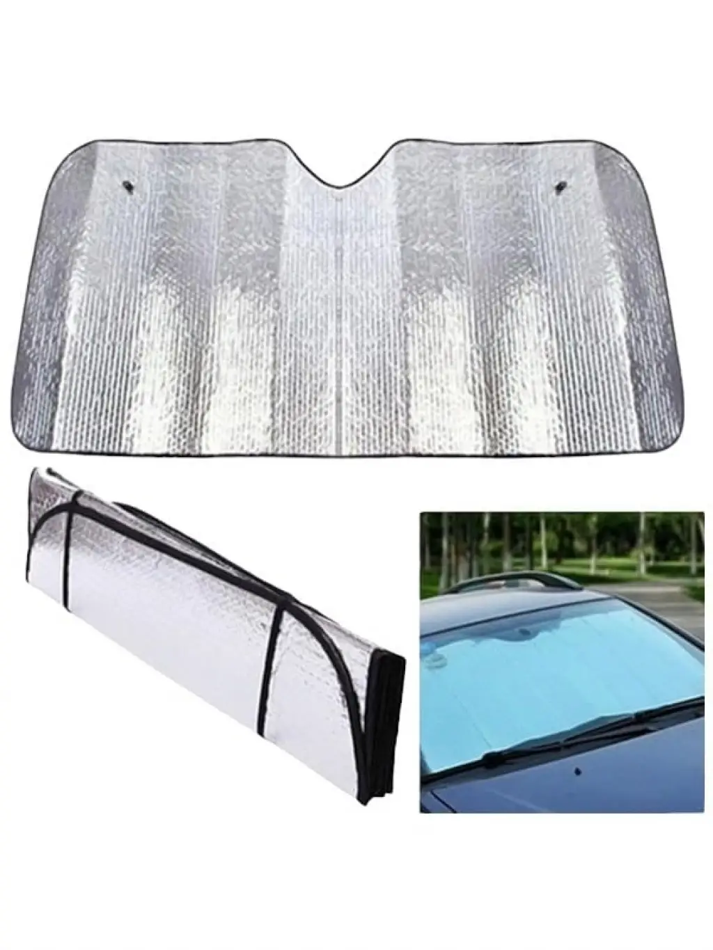 Araba Ön Cam Güneşliği güneş ışınlarını geri yansıtan tasarımıyla aracınızı daha serin tutmanıza yardımcı olacak. Yaz günlerinde aracınızı güneş alan bir alana park etmek zorunda kaldığınızda aracınızı aşırı derecede ısınmış bir şekilde bulabilirsiniz. Ön cam güneşliği metalize reflektörlü aluminyum yüzeyiyle güneş ışığını %99'a kadar bloke ederek daha konforlu bir yolculuk olanağı sunar. Aracınızı daha kısa süre içerisinde serinletebilmenize yardımcı olarak zaman kaybını ve klima kullanımına bağlı yakıt tüketimini azaltmanızı sağlar. Süngerli iç yapısı ürüne ekstra izolasyon yapabilme özelliği katarak aracınızı aşırı ısınmaya karşı korurken, aracınızın deri, plastik ve kumaş aksamlarının da zararlı ışınlara bağlı olarak hasar görmesini engeller. Katlanabilme özelliğiyle aracınızda yer işgal etmeden kolayca taşıyabileceğiniz ürün, 130 cm'lik genişliği ve 60 cm'lik yüksekliğiyle tüm standart otomobil modelleriyle uyumludur. Ürün Özellikleri: Metalize reflektörlü otomobil güneşliğidir Aracınızı aşırı ısınmaya karşı korur Süngerli iç yapısıyla ekstra izolasyon sunar Deri, plastik ve kumaş aksamları zararlı ışınlardan korur Tüm standart otomobil modelleriyle uyumludur Kolayca takılıp sökülebilir, defalarca kullanılabilir Katlanabilir yapısıyla taşınması ve saklanması kolaydır Ürün Ölçüleri Açık Ebat: 130 cm x 60 cm