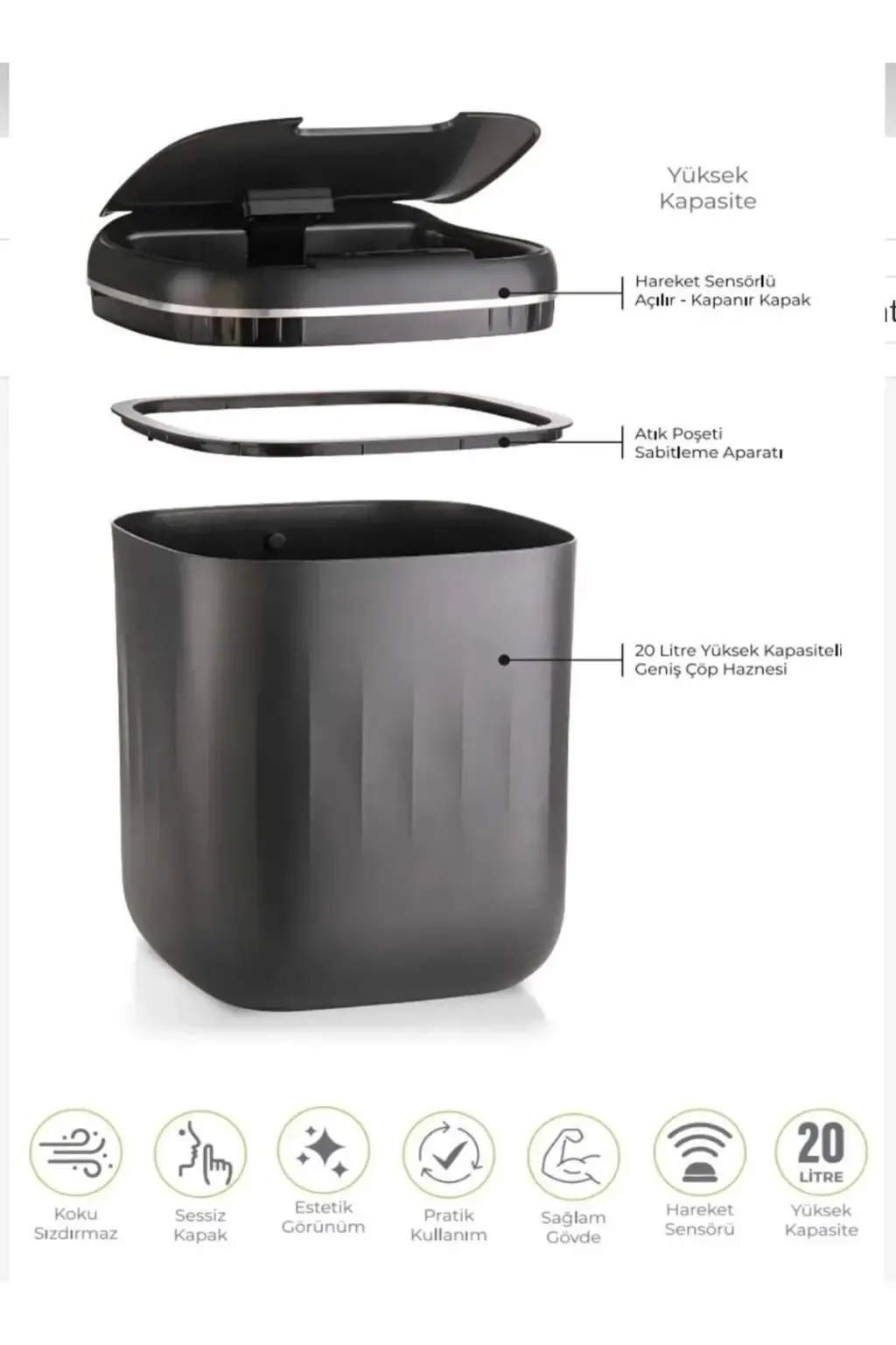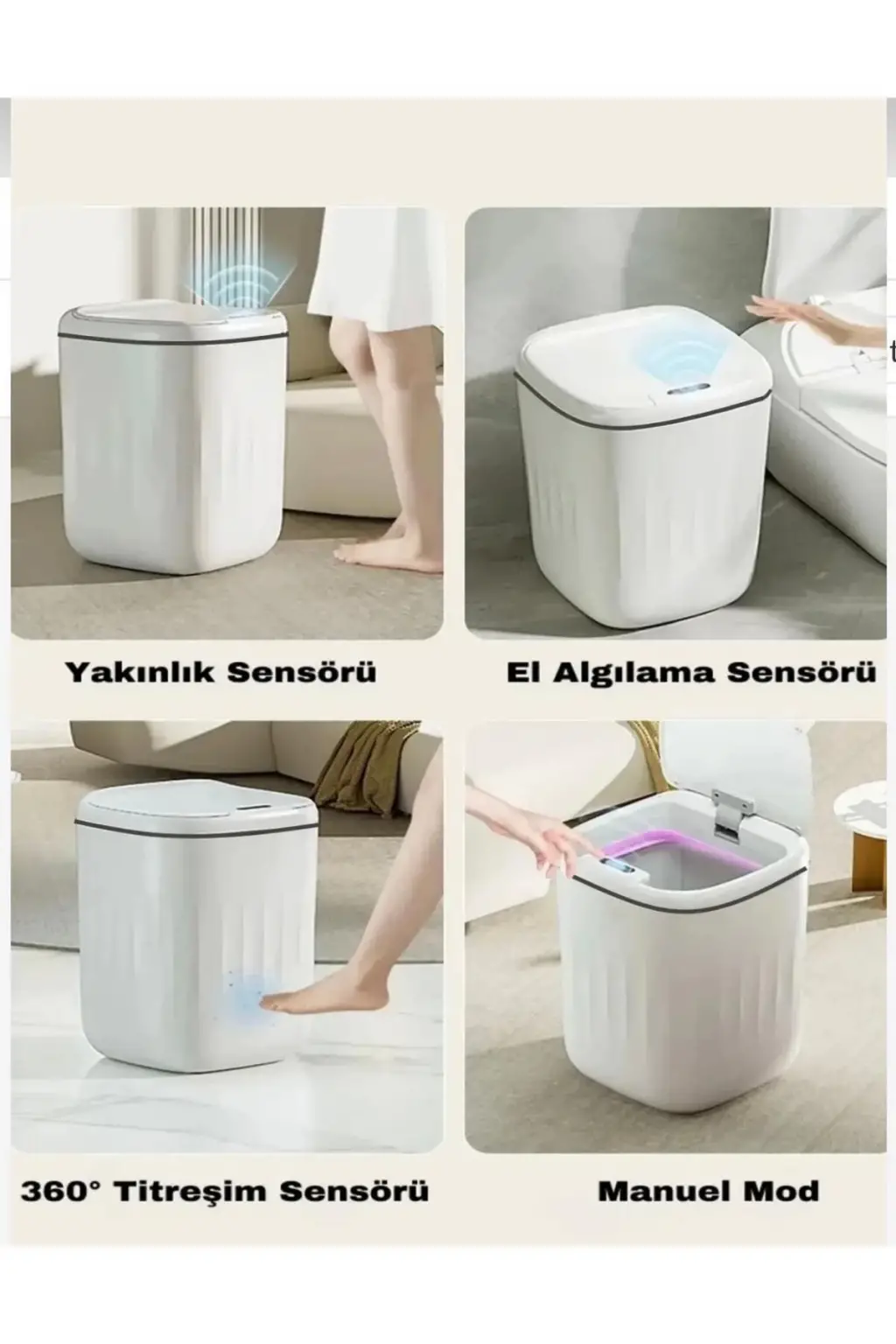 Otomatik Hareket Sensörlü Akıllı Çöp Kovası, evde ve ofiste hijyenik ve sessiz bir çöp atma deneyimi sunar.