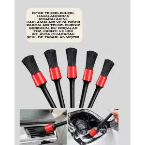 5 Boy Fırçalı Araba Temizlik Seti-Derin Temizlik Sağlayan Yumuşak Fırçalar