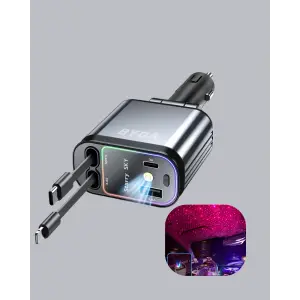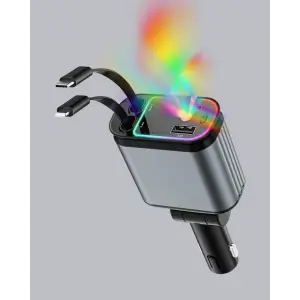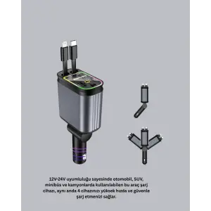 Araç Şarj Adaptörü 66W PD QC Hızlı Şarjlı ve Çekilebilir Kablolu