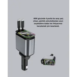 Araç Şarj Cihazı 66W 4 Portlu Hızlı Şarj ve LED Işıklı