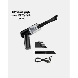 Mini Şarjlı Araç Süpürgesi – 120W Güçlü Motor, 5500PA Vakum Emiş, Yıkanabilir Filtre