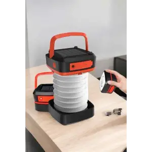 Katlanabilir Kamp Lambası Solar Fener Görünümlü 3 Kademeli Şarjlı