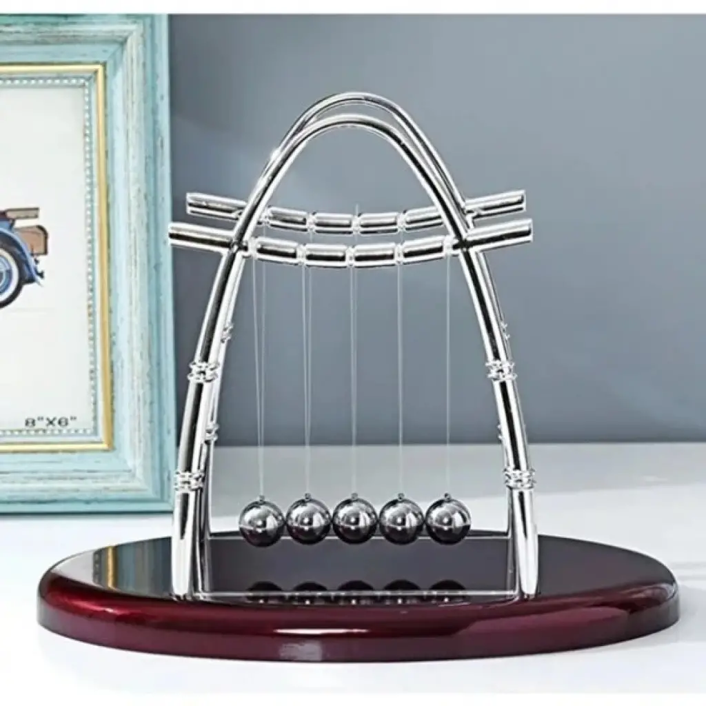 OVAL TABANLI NEWTON BALANS BEŞİĞİ Ürün ÖzellikleriFiziğin büyüleyici dünyasını masanıza taşıyan Newton Balans Beşiği, kinetik enerjinin ve momentumun korunumu ilkelerini en estetik şekilde sergiliyor. Klasik bir bilim ikonu olan bu sarkaç, oval formdaki koyu renk şık tabanı ve parlak metal kavisli iskeletiyle çalışma alanınıza sofistike bir hava katar. Bir bilyeyi çekip bıraktığınızda bilyelerin birbirine çarpmasıyla oluşan ritmik hareket ve ses, hem görsel bir şölen sunar hem de stresli iş anlarında zihninizi dinlendirerek odaklanmanıza yardımcı olur. Yüksek kondisyonlu 5 adet çelik bilye ve dayanıklı misina ipleri sayesinde uzun süreli bir salınım performansı gösterir. Hem eğitici hem de dekoratif bir parça olan bu Newton denge topu, ofis masaları, çalışma odaları ve kitaplıklar için vazgeçilmez bir dekorasyon objesidir. Bilime ilgi duyanlar, öğrenciler veya masasında kaliteyi hissetmek isteyen profesyoneller için mükemmel bir prestijli hediye seçeneğidir.Ürün Teknik ÖzellikleriÖzellikAçıklamaÜrün AdıOval Tabanlı Newton Balans BeşiğiTaban TasarımıOval Şık Parlak TabanBilye Sayısı5 Adet Paslanmaz Çelik BilyeGövde MalzemesiKrom Kaplama Metal İskeletKullanım AlanıOfis, Çalışma Odası, Okul, DekorasyonİşlevStres Giderme, Fizik Deneyi, Estetik GörünümDenge AyarıHassas Hizalanmış Ritmik SalınımPaket İçeriği1 Adet Oval Tabanlı Newton Balans Beşiği Sarkaç Seti