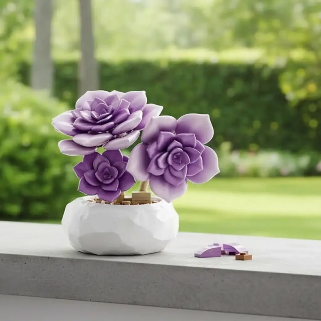 PANLOS Mor Sukulent Model, canlı mor tonları ve modern tasarımıyla hem eğlenceli hem de dekoratif bir block oyuncaktır.