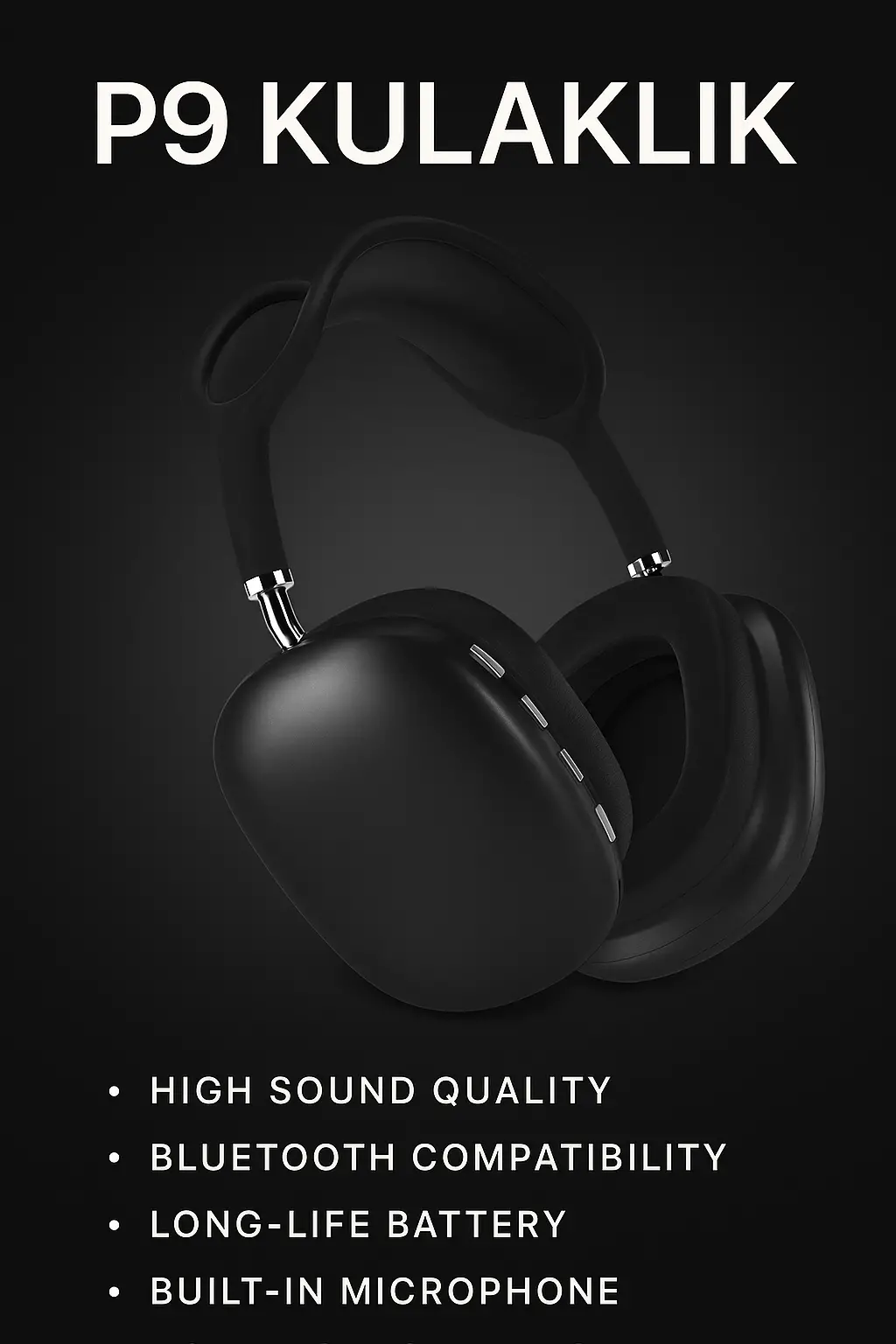 Bu P9 Siyah Kablosuz 5.0 Mikrofonlu Bluetooth Kulaklık, müzik dinlerken veya telefon görüşmeleri yaparken özgürce hareket etmenizi sağlar.