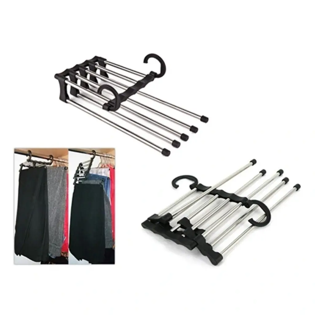 PANTOLONASKISIEğeryok ferah ferah olsun diyorsanız düz kullanım imkanı da mevcut. Düz kullanımda pantolonlararasında yaklaşık 5′er cm lik bir boşluk oluyor.Ve dilediğiniz pantolonukendinize doğru çekmeniz ile pantolonun asılı olduğu çubuk ileri doğru çıkıyor.Yan askı adeta size pantolonu sunuyor.Dikey kullanım ise daha önce desöylediğim gibi tam anlamıyla bir hacim avantajı sağlıyor.Yine pantolonunuzu almak oldukça rahatve pratik... Dolabınızın israf edilen dikey boşluğundan faydalanarak %400oranında alan tasarrufu sağlayabilirsiniz.5 askılı dolap içi hareketli askı sistemi ilepantolonlarınız çok daha düzenli duracak. ÜrünÖzellikleri:Dayanıklı krom askılarpantolonlarınızı boşluklu tutarak kırışmasını engellemektedir.Daha çok pantolon asmak için pantolonaskısının her iki çengelini de kullanabilirsiniz. Seyahate çıkarken pantolonlarınızıburuşturmadan kolayca unuza yerleştirebilirziniz.Krom askıları uzatarak tek tek pantolonlarınıza kolayca erişebilirsiniz.Böylece diğer pantolonlarınız buruşmaz.Kemerler, eşarplar ve büyükfularlarınız için de idealdir!Dolabınızda yer açan özel bir tasarım. Paketİçeriği:1 adet Pantolon Askısı