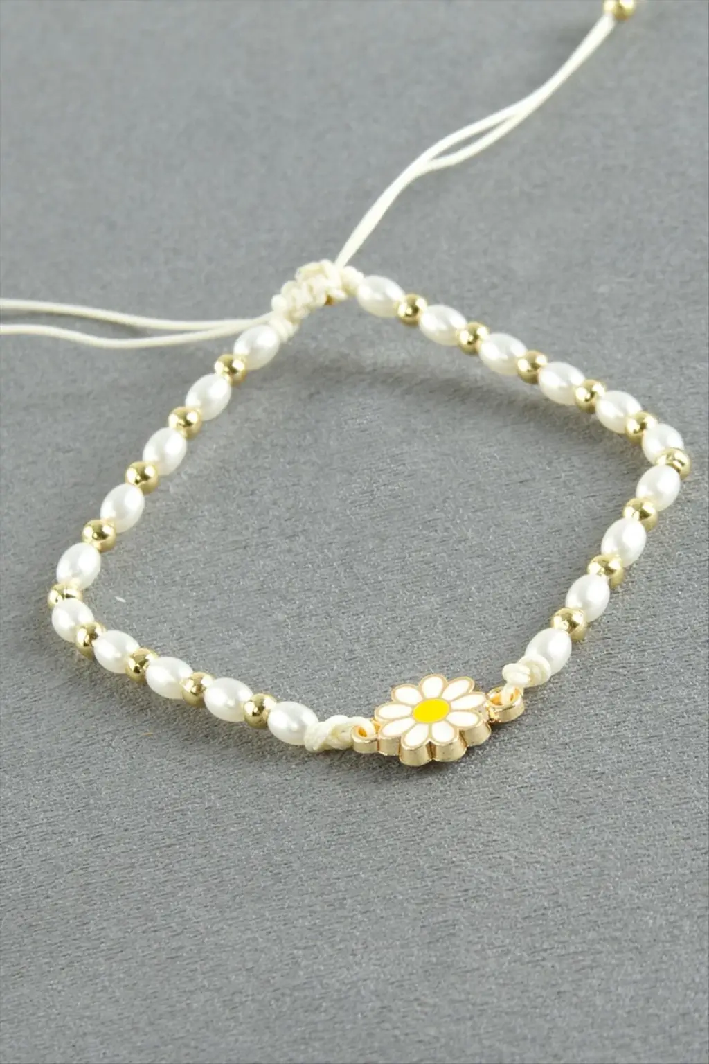 Bileklik; Ürün malzemesi inci ve makrome iptir. Ürün arkası asansörlüdür. Bileğe göre ayarlanabilir.