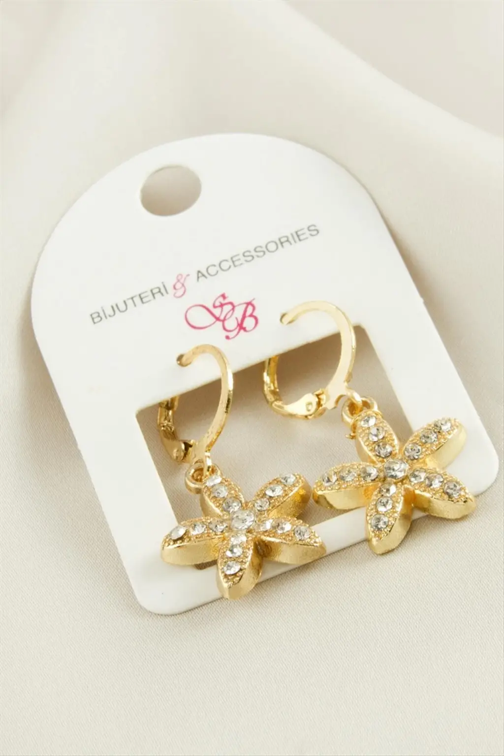 Yıldız Damla Sedef Taşlı Metal Küpe