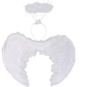 Beyaz Renkli Tüylü Bebek Melek Kanadı ve Tacı 30x45 cm