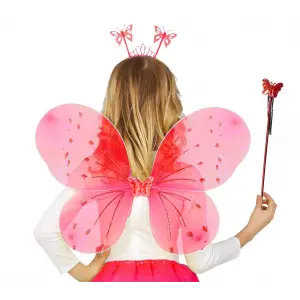 Kırmızı Renk Çocuk Kelebek Kanadı Tacı ve Asa Seti 50 cm