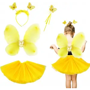 Sarı Kelebek Kostümü Çocuk - Sarı Kelebek Kostüm Aksesuar Seti 4 Parça