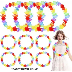 Hawaii Çiçekli Boyun Kolyesi - Renkli Tropikal Parti Leisi 12 Adet