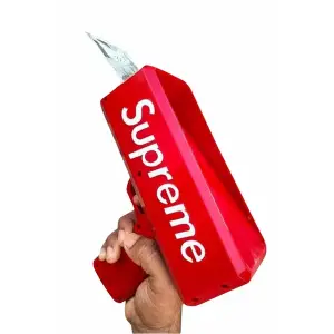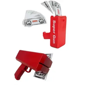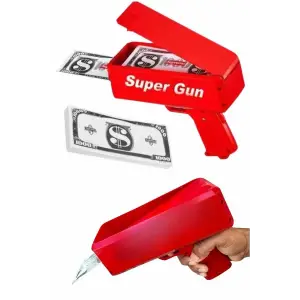 Kırmızı Parti Oyuncağı Para Saçma Fırlatma Tabancası Makinesi Super Money