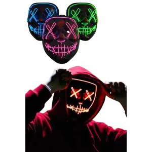 Hallowen Parti Maskesi Neon Led Işıklı Maske 3 Modlu Cadılar Bayramı Maskesi