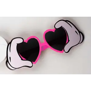 Pembe Renk Kalp Şekilli El Figürlü Parti Gözlüğü 21x8 cm