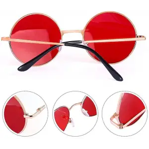 Yuvarlak Cam John Lennon Tarzı Gold Çerçeveli Kırmızı Gözlük