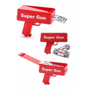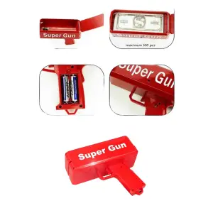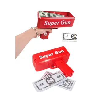 Kırmızı Parti Oyuncağı Para Saçma Fırlatma Tabancası Makinesi Super Money