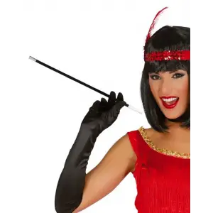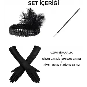 1920'ler Gatsby Aksesuar Seti – Siyah Charleston Saç Bandı, Uzun Eldiven & Sigaralık
