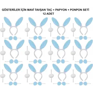 Mavi Tavşan Kostüm Seti – Taç, Papyon, Ponpon (12’li Paket)