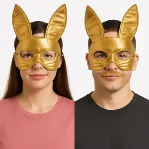 Altın Renk Kumaş Malzemeden İmal Tavşan Maskesi 25X17 cm