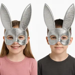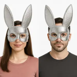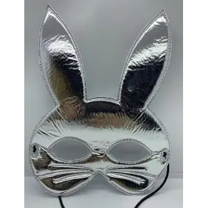 Gümüş Renk Kumaş Malzemeden İmal Tavşan Maskesi 25X17 cm