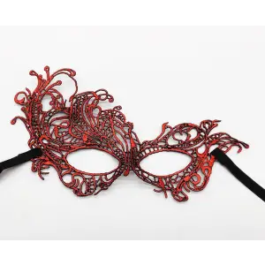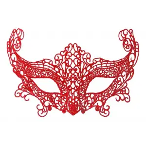 Kırmızı Renk Dantel Örgü İşlemeli Parti Maskesi Model 2