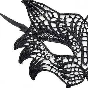 Siyah Renk Kedi Model Dantel İşleme Parti Maskesi 8 No